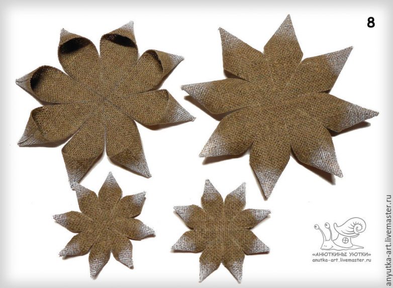 7) Делаем второй ряд лепестков как у цветка-звезды. Тонируем. Приклеиваем (фото 8).