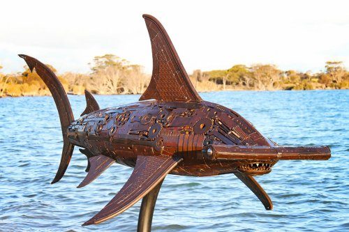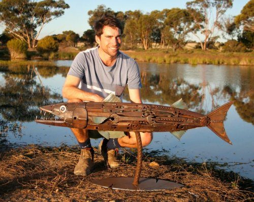 Художник из небольшого западноавстралийского городка Нерембин (Narembeen) использует переработанный металл, который находит в старых механизмах и на свалках металлолома.