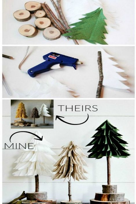 Елочки из веток и бумаги.