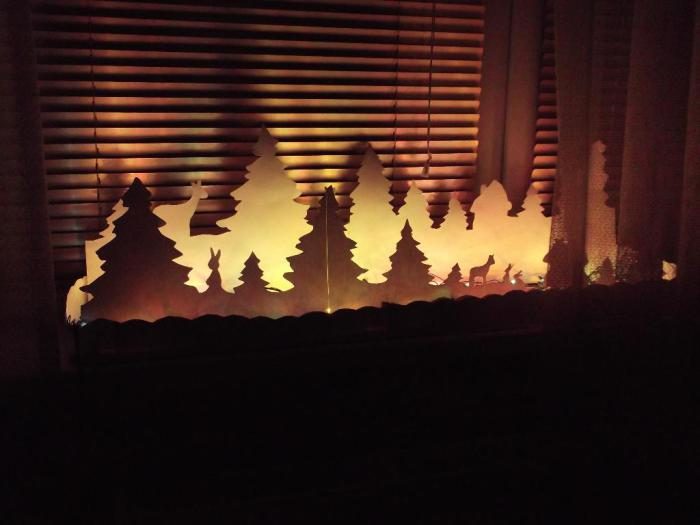 Альтернативная новогодняя иллюминация.Вырежьте из бумаги очертания домов и склейте их в форме прямоугольника. Внутрь миниатюрного пейзажа положите гирлянду или поставьте электрические свечи – так декор будет пожаробезопасен.