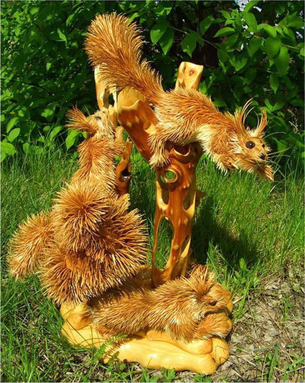 На протяжении нескольких лет Сергей создает невероятно реалистичные скульптуры из… деревянной стружки. Выглядят они настолько натурально, что сложно поверить, что сделаны из дерева.