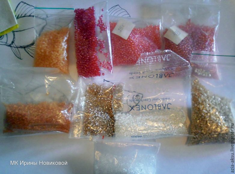 Хотя я вру и не краснею :) Из пакетиков в этот раз ничего брать не буду, так как от прошлых рыбок у меня пара крышечек осталась с миксом бисера-рубки рыбьих окрасов. Им и воспользуюсь.