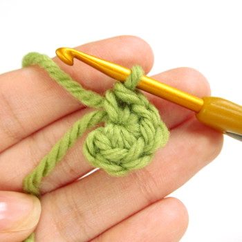 Вытащить рабочую нить и затянуть. Эта петля не является первым столбиком в кольце.