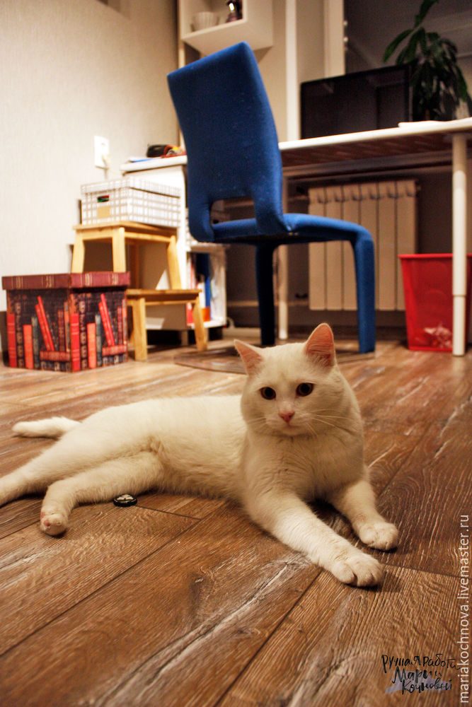 В таком состоянии можно стульчик и оставить. Честно говоря, так он и простоял у меня недели 3. Могу сказать, что стул котяра больше не дерет, более того, это теперь одно из любимых мест для сна. Но чего-то мне не хватало, да и для мастер-класса как-то скучновато. Приделаю-ка я кисточки! Казалось бы, сумасшедшая, какие кисточки? Это же как красная тряпка, только для кота! Прошло 2 дня, кисточки кот не трогает, надеюсь, прокатит.