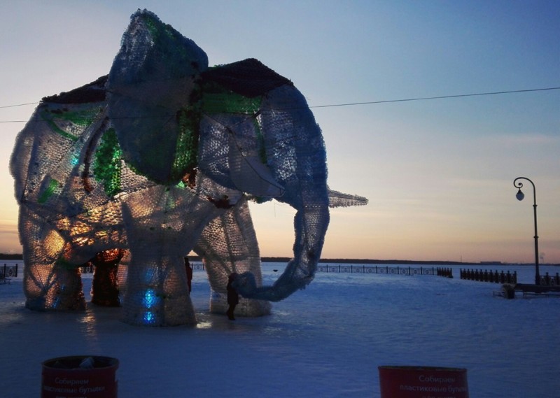 В Архангельске завершилась акция, целью которой являлось попадание в книгу рекордов Гиннесса. На Красной пристани столицы Поморья активисты возвели огромного слона из пластиковых бутылок.