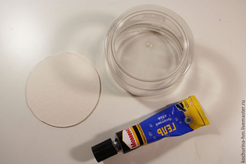 Далее вырезаем из пивного картона круг, по размеру крышки. Делаем заготовку. Откладываем ее.