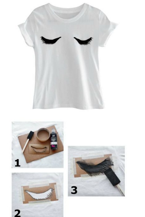 С помощью специальных красок, картонных трафаретов и поролоновой кисти можно украсить невзрачную однотонную футболку стильным принтом.