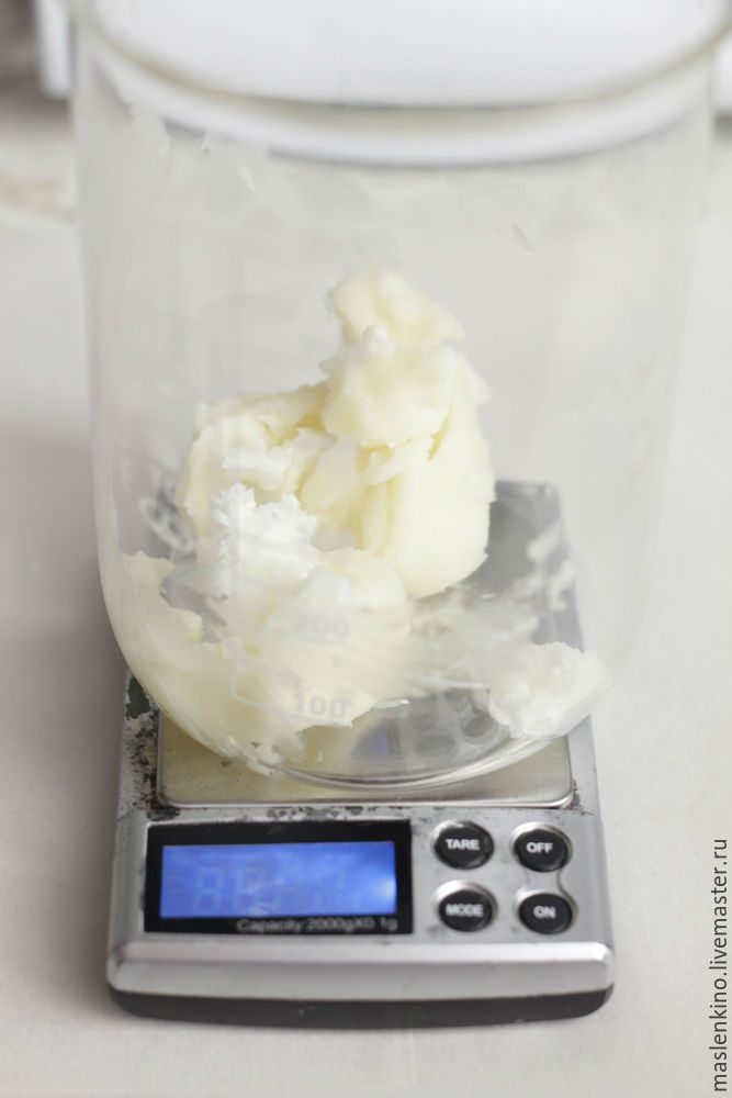 Ставлю растапливаться в микроволновку. Важно довести баттеры до мягкого состояния, но не растапливать полностью. Вот такой консистенции должны получиться масла пальмы и ши.