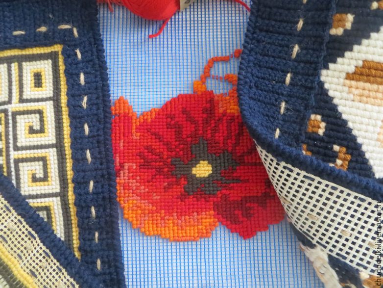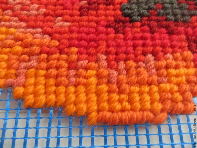 Сразу совет: при работе края сетки начинают немного распускаться, поэтому до того, как приступите к вышивке, лучше их промазать клеем Титан (или обшить).