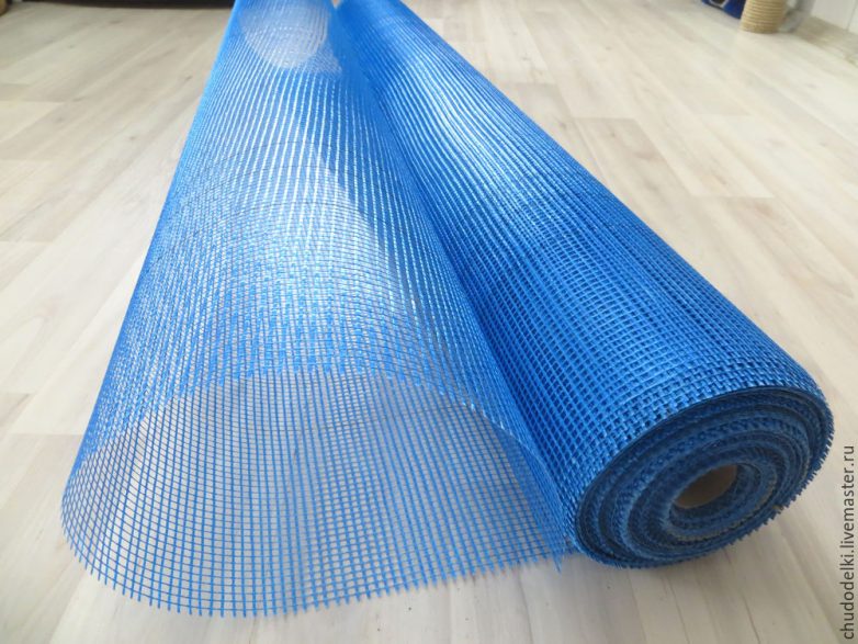 Но выход есть! Строительная сетка для вышивки крестом (крупным крестиком) — это супернаходка. Только сетка не абы какая, а «армирующая, под штукатурку» (в прямом назначении она крепится к стене, а на нее, поверх, наносится штукатурка). Продается в любом строительном магазине. Бывает разных цветов, мне встретилась синяя.