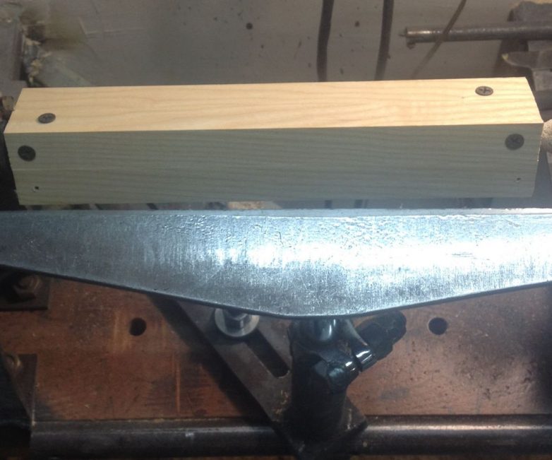 Получившийся брус зажимаем в центрах токарного станка и выставляем подручник.