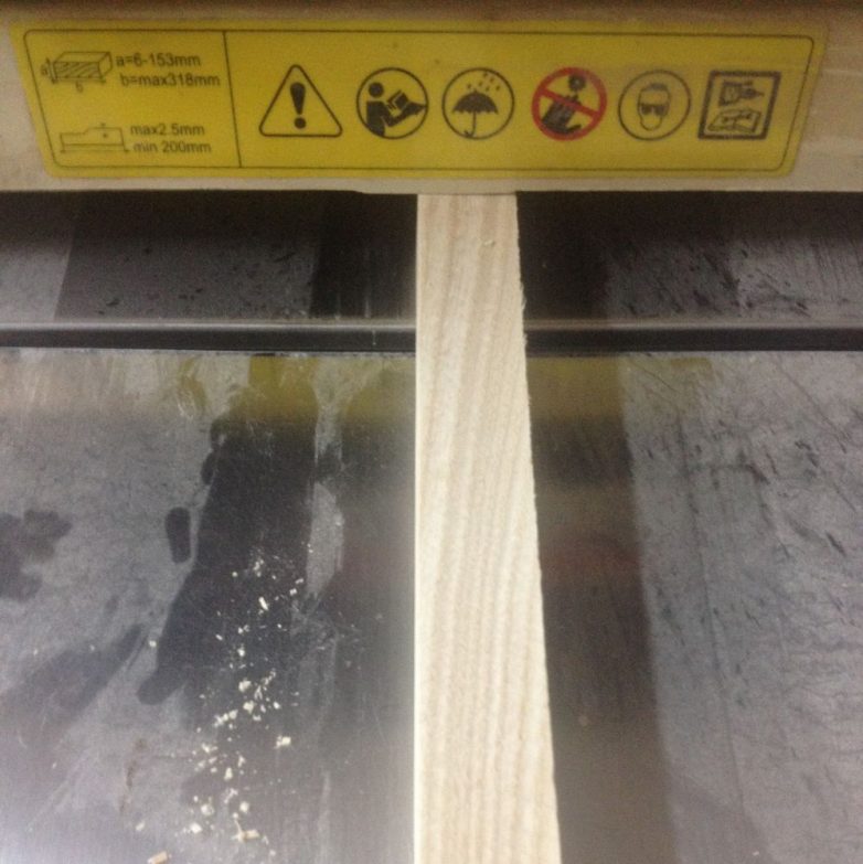 Набираем необходимое количество материала, калибруем по ширине и толщине, нарезаем по упору.