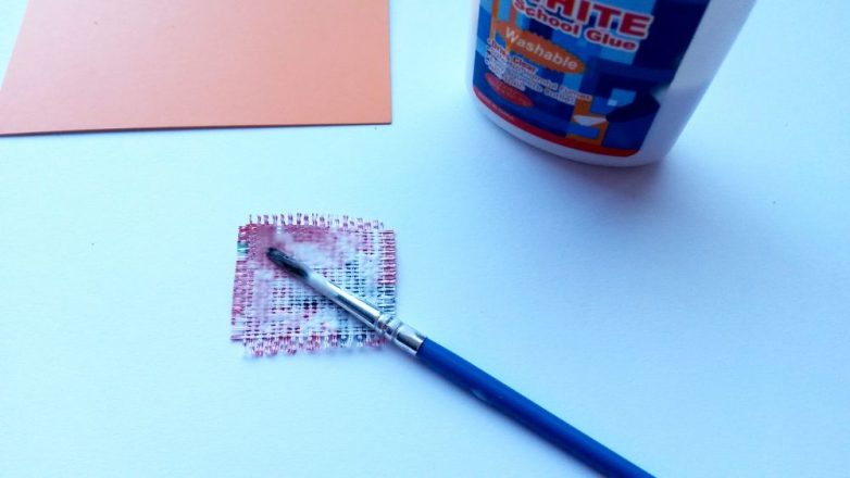 3. Наносим клей ПВА на изнаночную сторону квадратика.