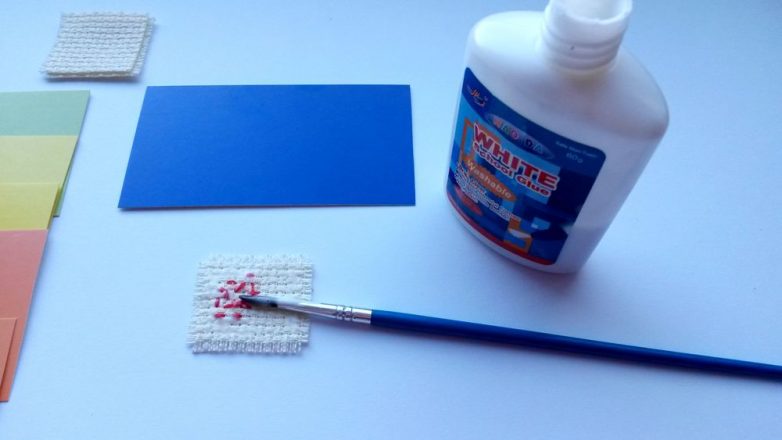 1. Наносим клей ПВА на изнаночную сторону квадратиков.