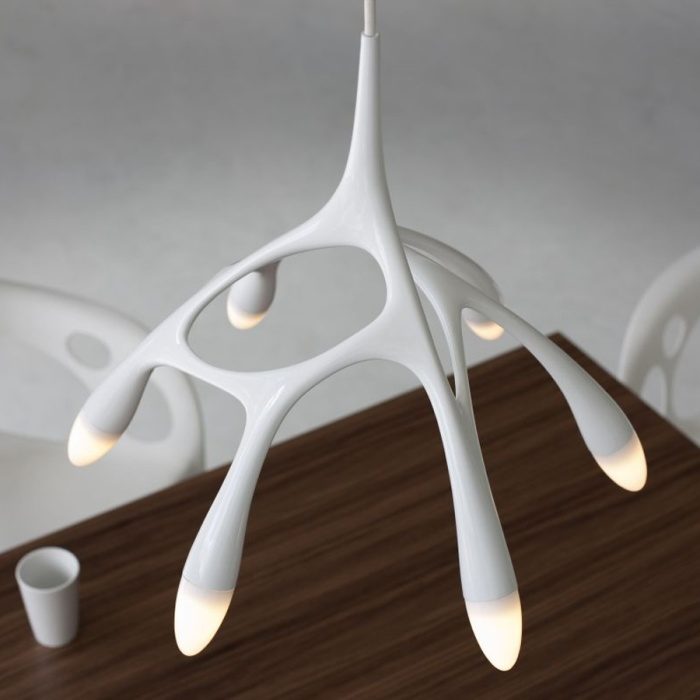 Экстравагантный светильник для любителей минимализма.Светильник белого света поможет развить фантазию. Ведь в его причудливой форме можно разглядеть множество объектов — от паука до ветки дерева.
