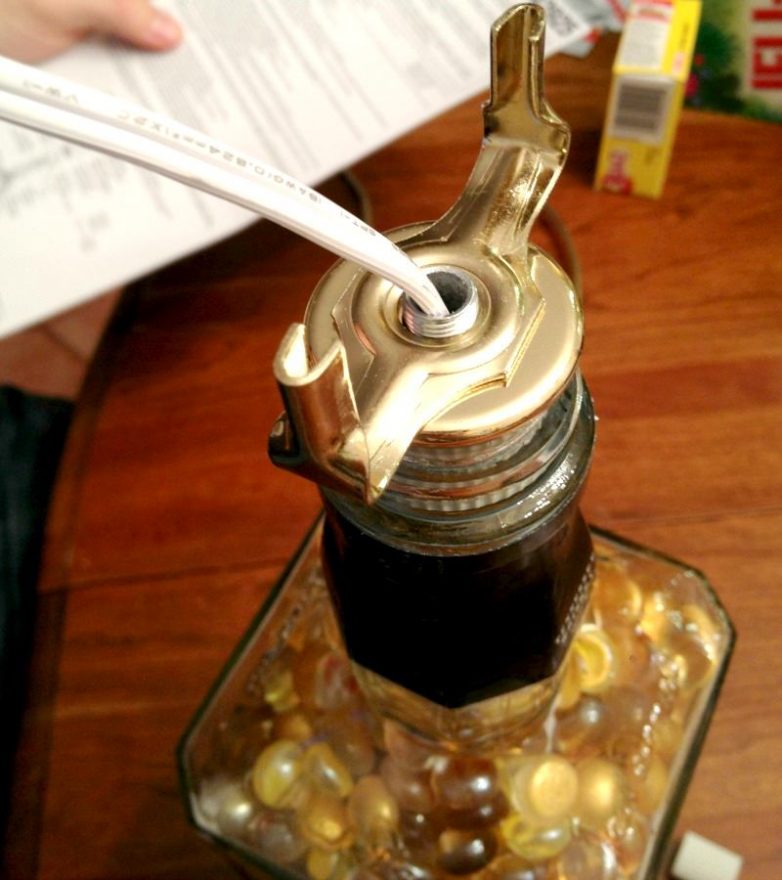 — набор для сборки настольной лампы (на Аmazon и eBay можно найти специальный набор для бутылочных ламп — Bottle Lamp Kit) или старый ненужный светильник;