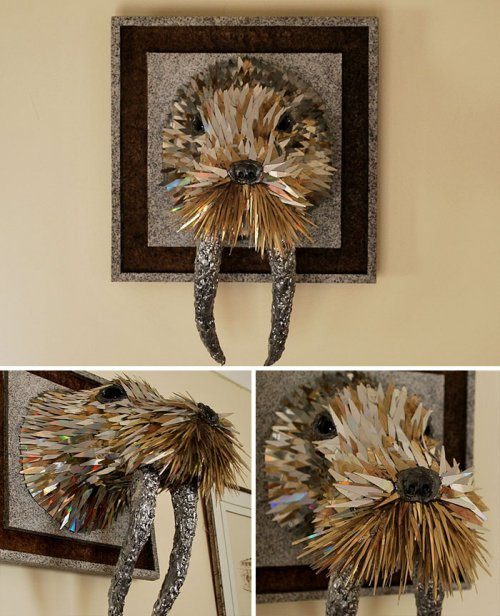 Талантливый художник превращает их в великолепные скульптуры животных. Приклеивая осколки компакт-дисков на проволочные основы, сделанные в форме различных животных, он создаёт потрясающие скульптуры, поражающие своей детализацией и красотой!