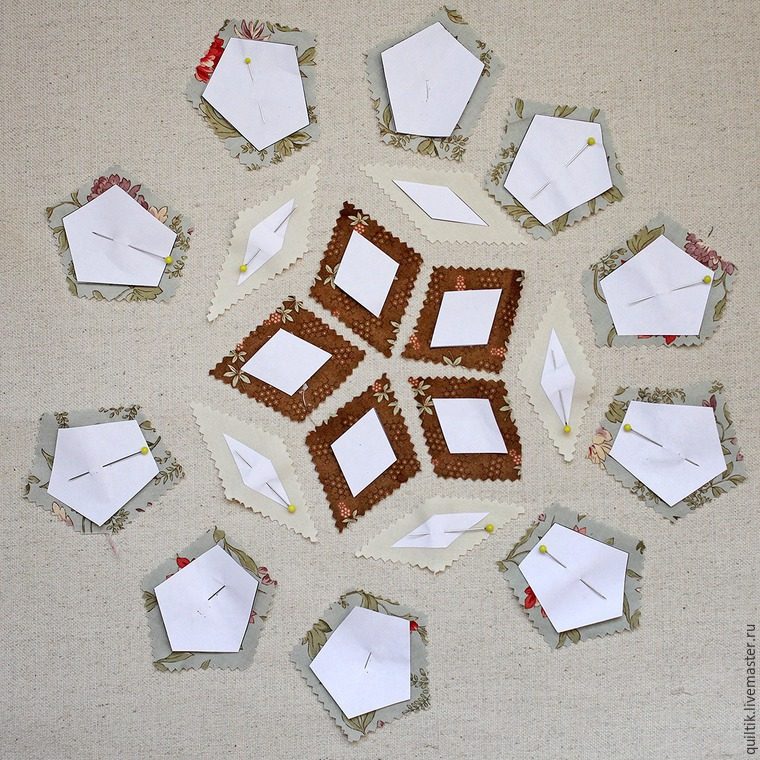 В разных источниках по-разному: кто-то сначала приутюживает, затем наметывает, кто-то наоборот. Мне сподручнее первый вариант. Нужно посадить ткань на шаблончик и зафиксировать его.