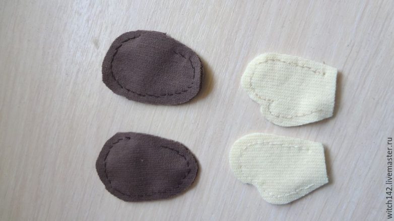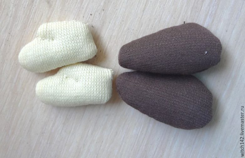 Теперь нам нужны ручки и ножки. Для рук выбрала светлый трикотаж, для ног — темный.
