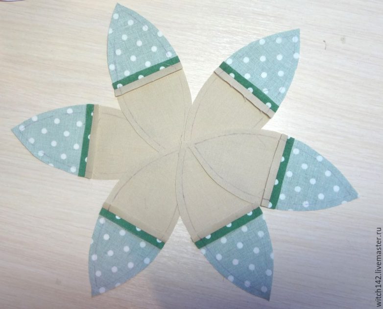 Последний лепесток сшиваем с первым, оставляя в нижней части отверстие для выворачивания. С помощью деревянной палочки аккуратно выворачиваем.