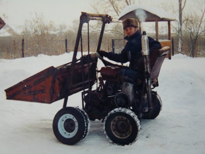 Иван Васильевич признается: техникой был увлечен с детства. Еще будучи ребенком, он собирал самокаты то на подшипниках, то с колесиками от детской коляски. Но именно в далеком 1997 году снегоуборочная машина-трицикл стала его первым полноценным изобретением. Она была необычной — два колеса у нее находились спереди, а одно — управляемое — позади. Как сейчас вспоминает изобретатель, машина была слабенькой — ей только и можно было снег на дорожках разгребать. Ее он решил усовершенствовать и собрал модель чуть посложнее, потом другую. А затем так втянулся в процесс, что начал создавать уже снегоуборщики с ковшами и шнекороторные машины. И не только их.Самый первый снегоуборщик топкинца был трехколесным.
