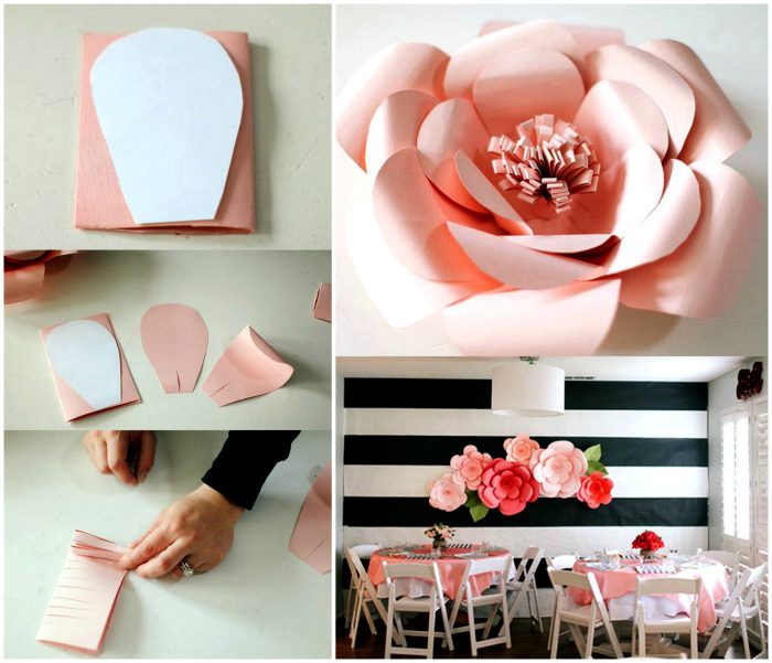Создать сказочную атмосферу в доме помогут огромные цветы, которые можно легко сделать из цветной бумаги и использовать для декора стен.