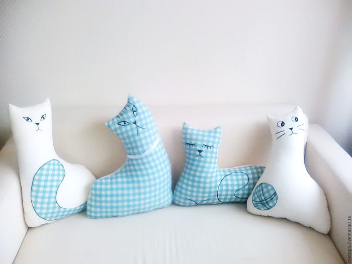 Подушки в форме кошек.Если не хочется долго думать над расцветкой подушек, то сделайте акцент на их форме. Например, подушки в форме животных гарантированно привлекут внимание.