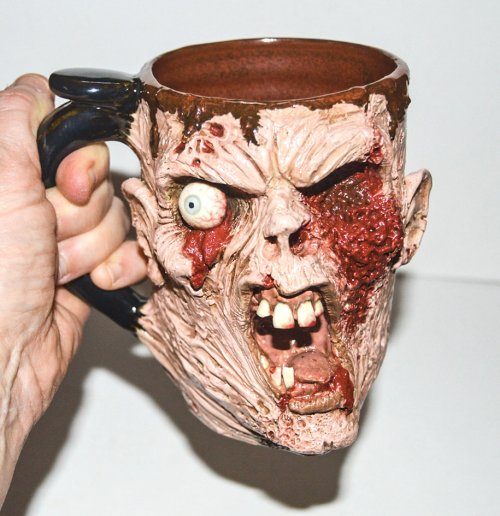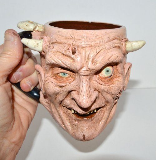 Какой кофе предпочитаете по утрам? Чёрный? С сахаром? Или прямо из ада? Как и Джо Скрэвис (Jo Scravis), художник, который стоит за этими ужасающими керамическими кружками ручной работы.