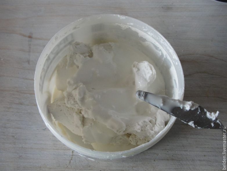 Готовим шпатлёвочную смесь. Откладываем шпатлёвку в отдельную емкость. Шпатлевка нужна густая, не растекающаяся.