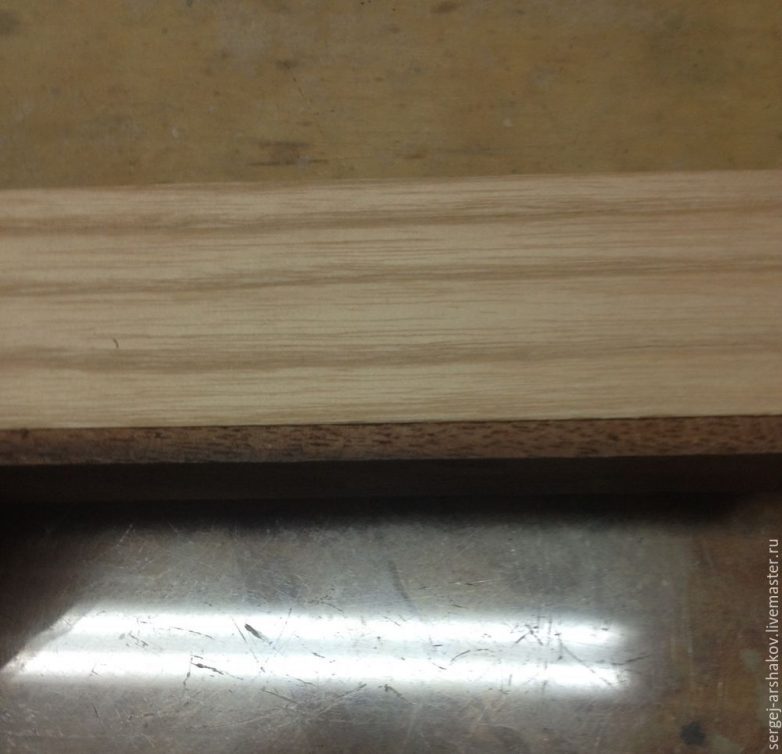 При помощи клея для дерева приклеиваем рейку чёрного ореха к ясеню.