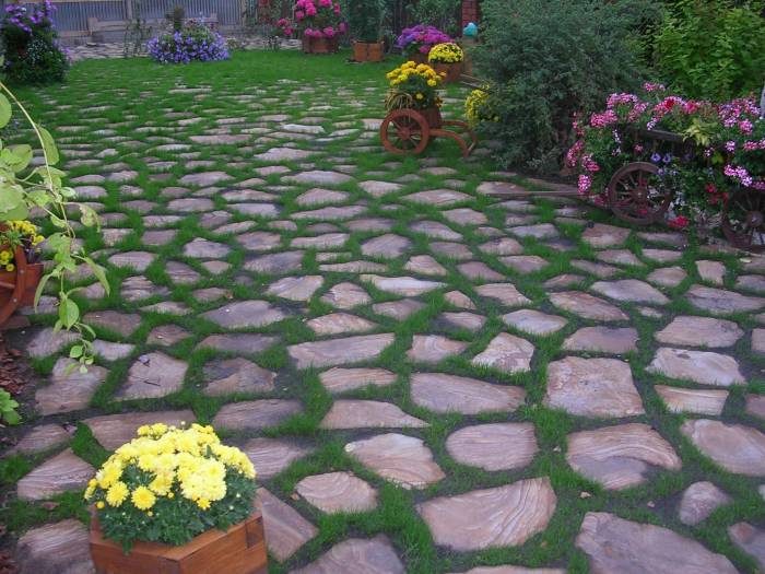Оригинальная садовая дорожка в виде мозаики в ландшафтном дизайне.