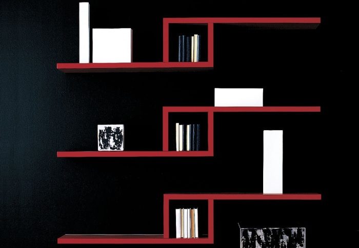 Полки красного цвета подойдут практически для любого интерьера.