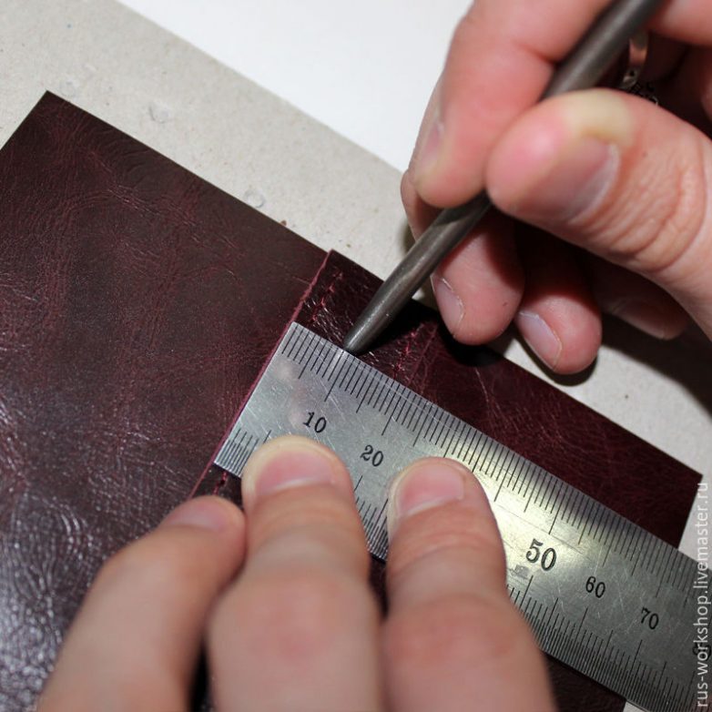 Итак, мы подошли к моменту, когда нужно рассказать, зачем мы делали закругление на уголках. Возьмите ножницы и аккуратно отрежьте их на лекало, а затем и на кожаных уголках.