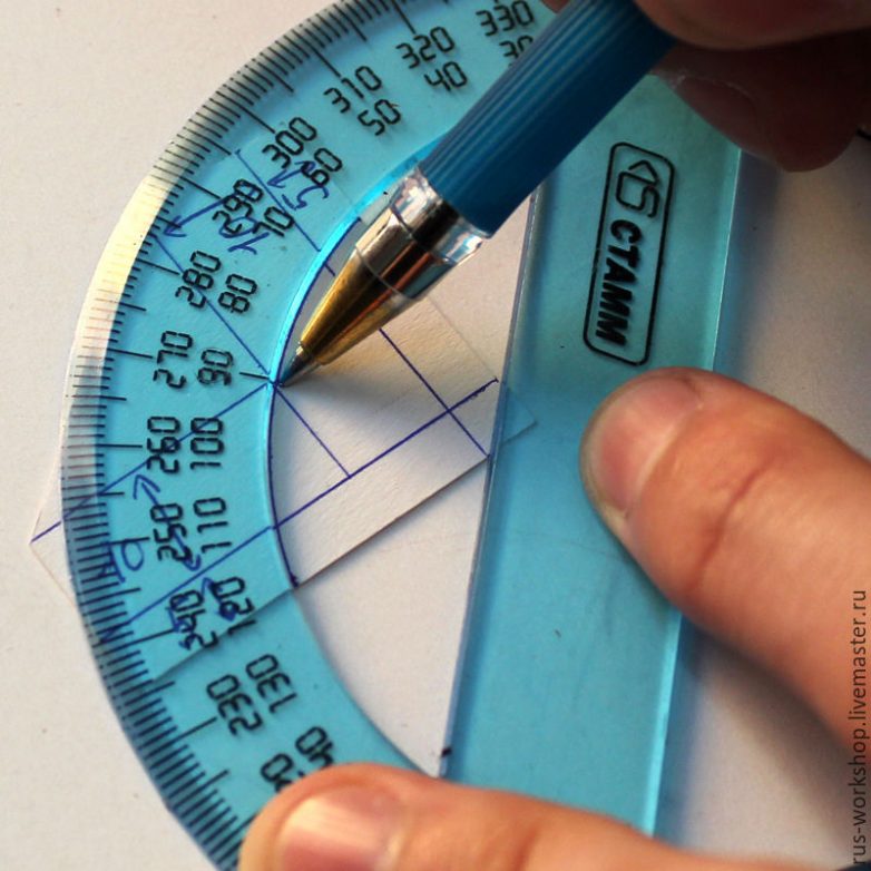 Для этого возьмите картон 0,5 мм, и отрежьте три прямоугольник 159х123мм (основа), 123х72мм (карманы), 77х72мм (карманы для карт). Отрежьте длинную полосу 204х20мм (хлястик), закруглите один конец. И две фигуры по указанным размерам на фото, зеркальные друг другу. Это будут два уголка, верхний и нижний. На уголках ручкой отчертите указанные размеры, и с помощью транспортира внутренним диаметром круга соедините три точки как на фото, и обведите. Для чего это нужно скажу позже.