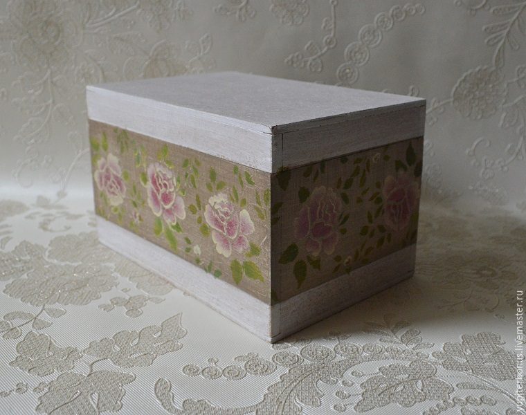 Таким образом окрашиваем все четыре стороны шкатулки и в итоге у нас получается вот такая «тканюшка».