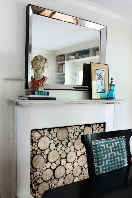 Чтобы усилить сходство фальшкамина с настоящим камином, заполните его дровами. Натуральное дерево впишется в любой интерьер, делая его максимально уютным.