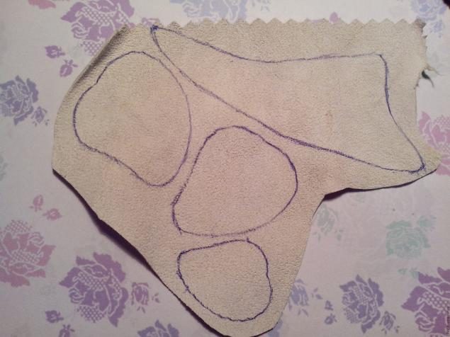 Теперь берём приготовленный кусочек кожи, обводим, вырезаем и приклеиваем к коже наши детали