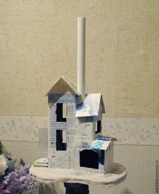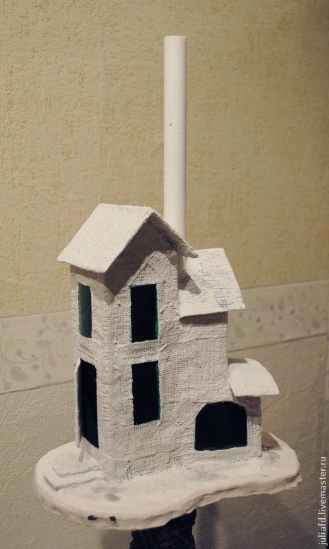 Мне мой дом нравился на всех финальных этапах. И в белом цвете с белым абажуром. Далее он был покрашен в черный цвет для последующей декорации. Но и в черном цвете с серебристо-стальным абажуром он прекрасно выглядел.