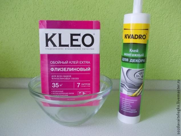 На фото пример обойного клея и того, которым я приклеивала декор: