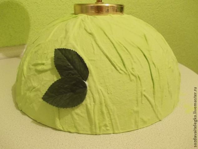 Так как кухня у нас в желто-зеленой цветовой гамме с золотой фурнитурой, то люстру делаем в тон кухни.