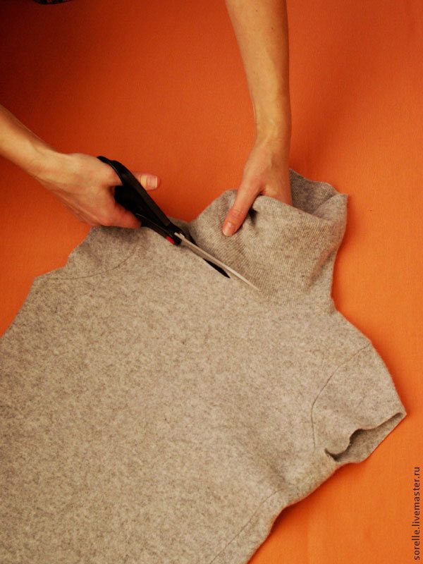 Отрезаем от старого свитера рукава и воротник-горло. Именно они нам и понадобятся для нового свитера.