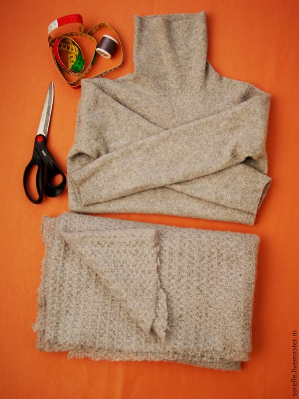 Ну и зачем здесь старый свитер?! Из такого куска вязанного полотна можно сшить СОВСЕМ новую вещь!