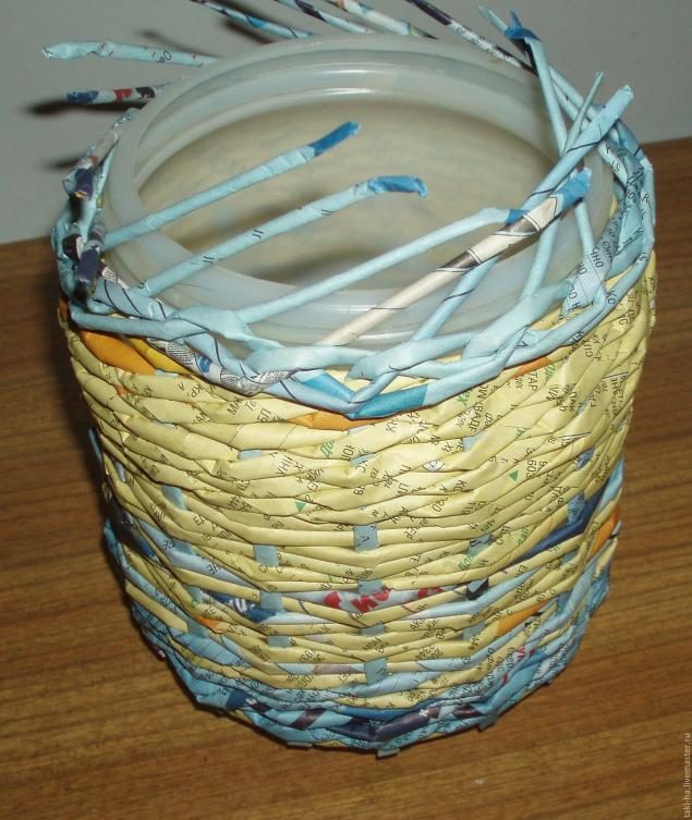 Предлагаю сделать одну из таких емкостей для хранения своими руками. Я уже показывала некоторые приемы плетения из газетной бумаги в своем предыдущем МК.