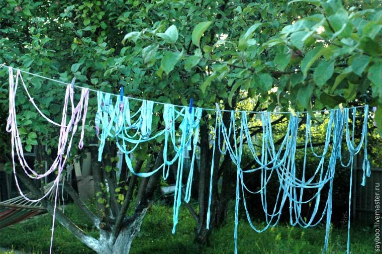 Потом, если случайная вещь оказалась ненужного цвета, кидайте ее в краситель, хуже уже точно не станет. В детском варианте вообще, чем ярче, тем веселее. У меня были красители Батик для ткани, но для коврика это слишком жирно. Но это у меня выбора не было, я же в деревне. Поэтому вам я рекомендую выбирать для покраски более экономичные и простые красители.