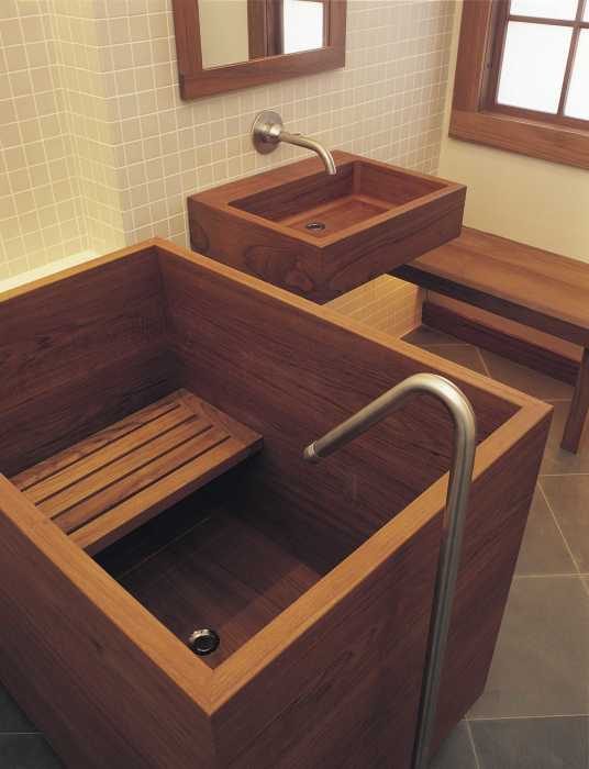 Деревянный умывальник отлично впишется в восточный интерьер.