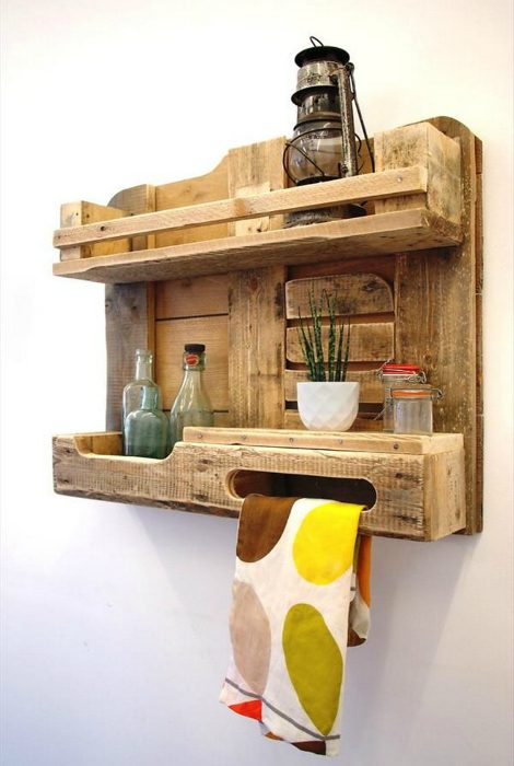 Умелые руки, нехитрые инструменты и один деревянный поддон позволят обзавестись оригинальной кухонной полкой с вешалкой для полотенца.