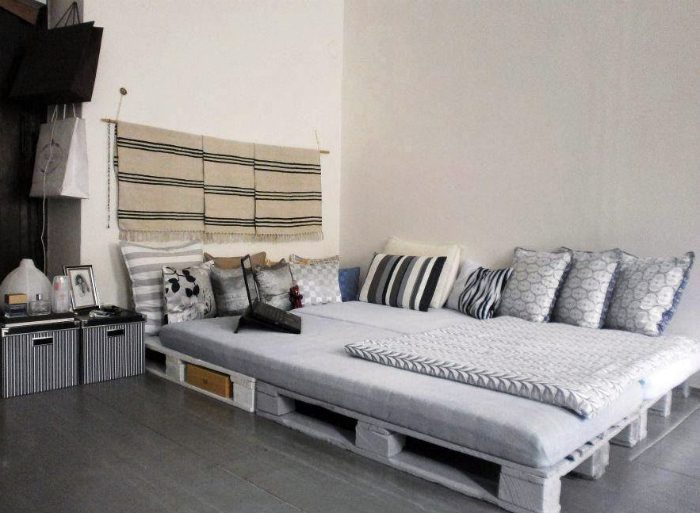 Из строительных поддонов можно смастерить действительно огромную и удобную кровать, процесс создания которой не потребует никаких специальных навыков, а результат прекрасно впишется в интерьер любой современной квартиры.
