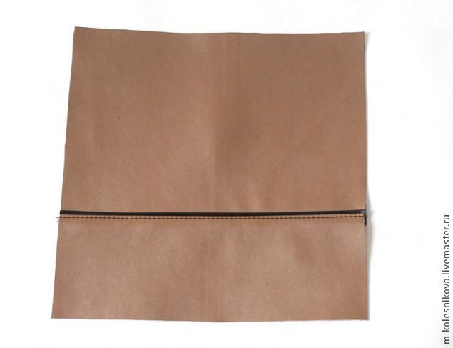 Его можно заменить на плотную ткань, для совсем-совсем начинающих шить из ткани будет проще. У меня кожзам на плотной тканевой основе, я ни чем его дублировать не буду. Если ваш материал не достаточно плотный, желательно продублировать его клеевой на тканевой основе.