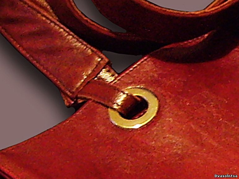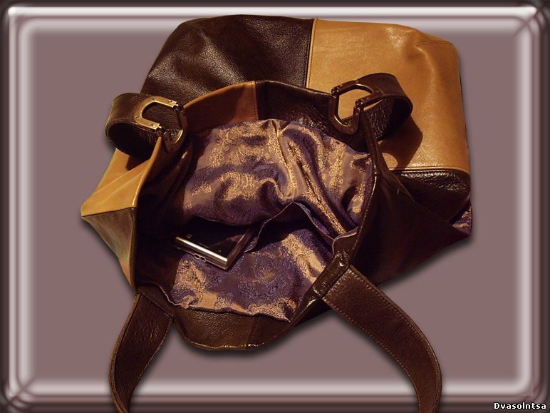 Я вшила ручку только на задней стороне сумки, а на передней ручка крепится красивыми железячками (сняла со старой сумки, только тссс! никому не говорите))).
