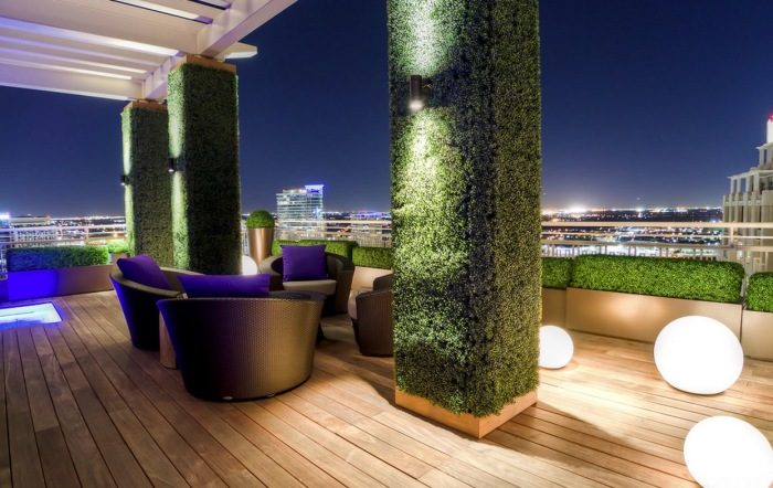 Открытая веранда с потрясающим освещением и оригинальным интерьером.